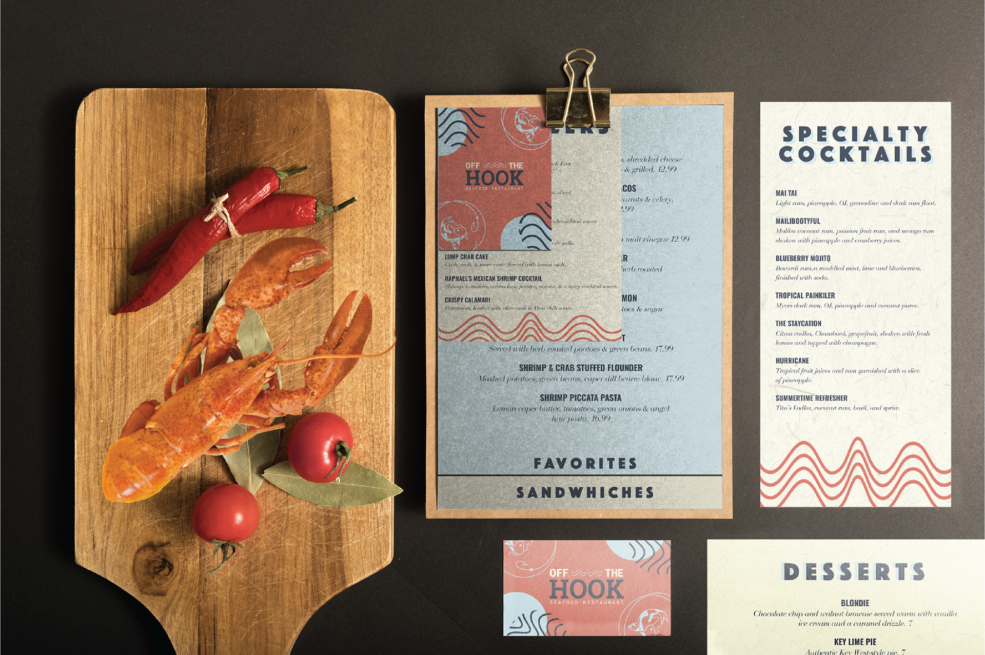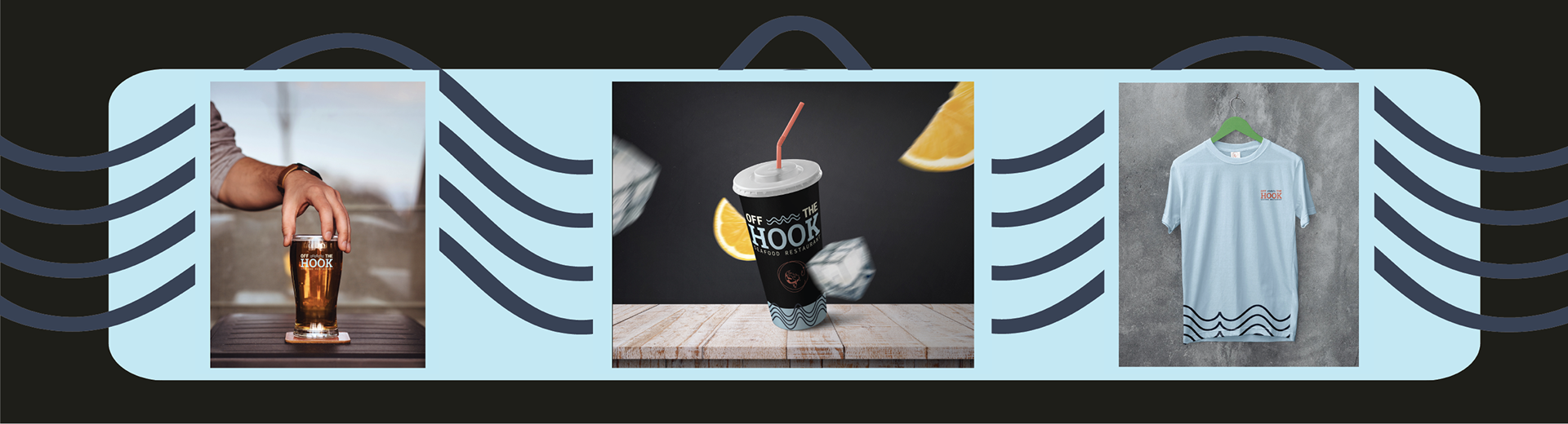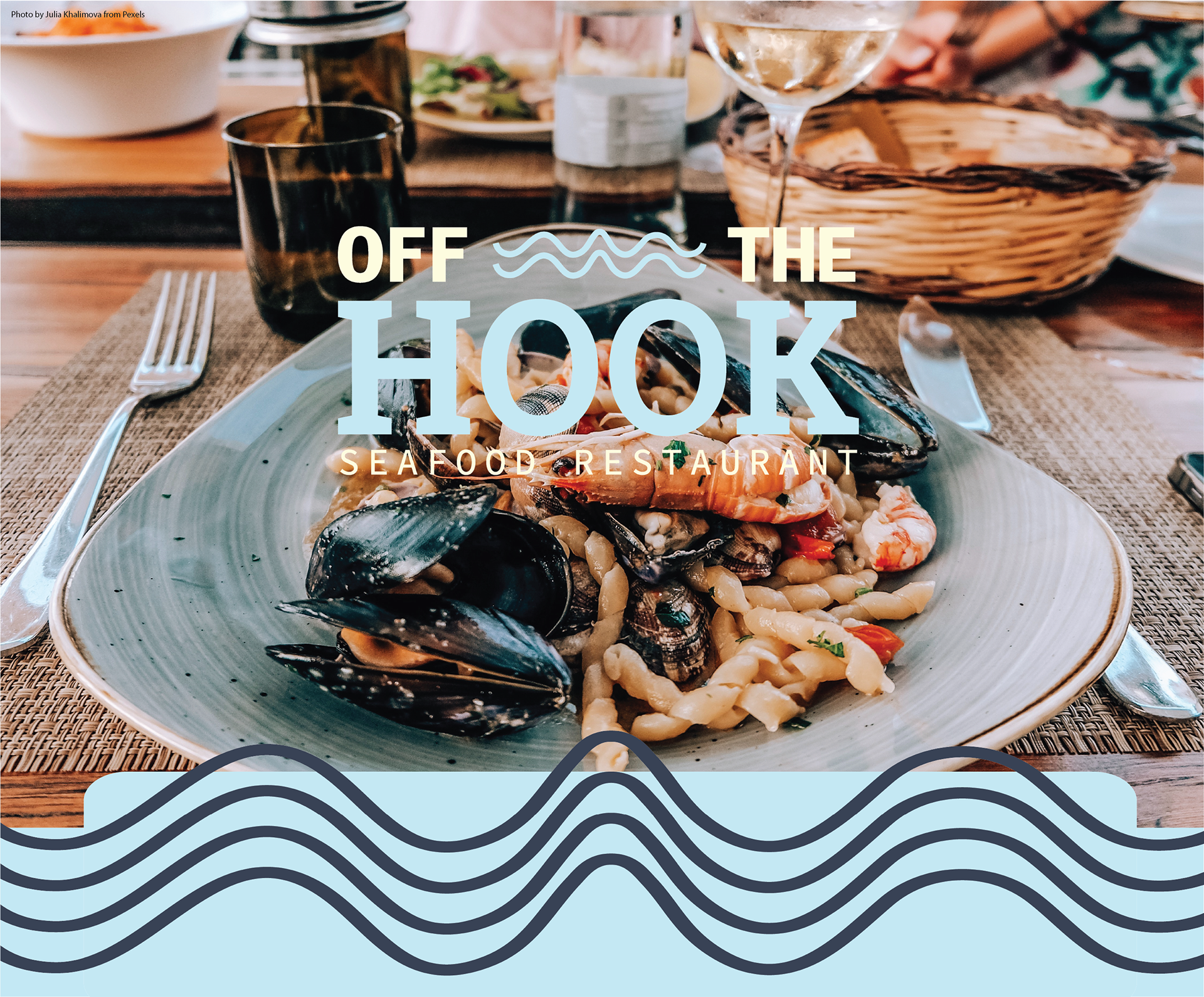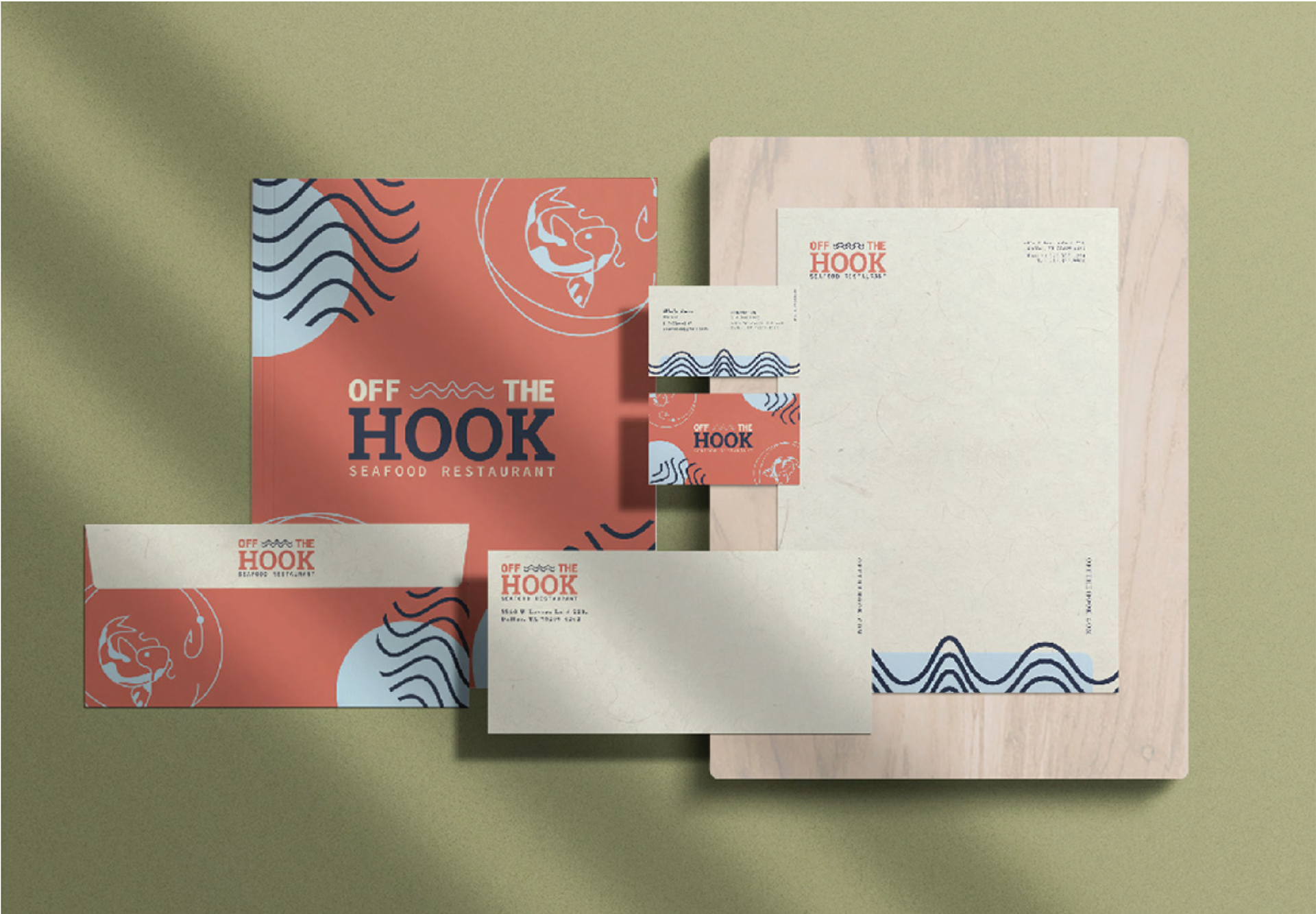 I created a restaurant to brand. I created Off the Hook a Seafood restaurant. It is a upscale restaurant that is located off the beach. My main goal was to create a modern and fresh brand that would attract influencers and tourists.